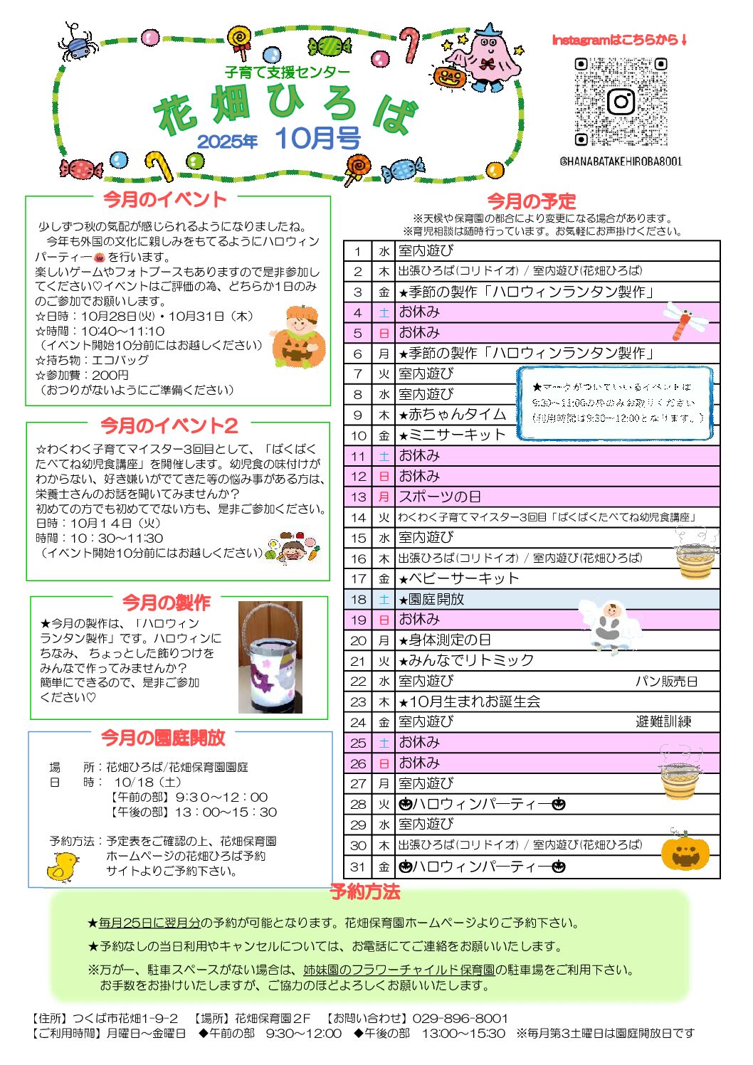 花畑ひろば 10月カレンダー