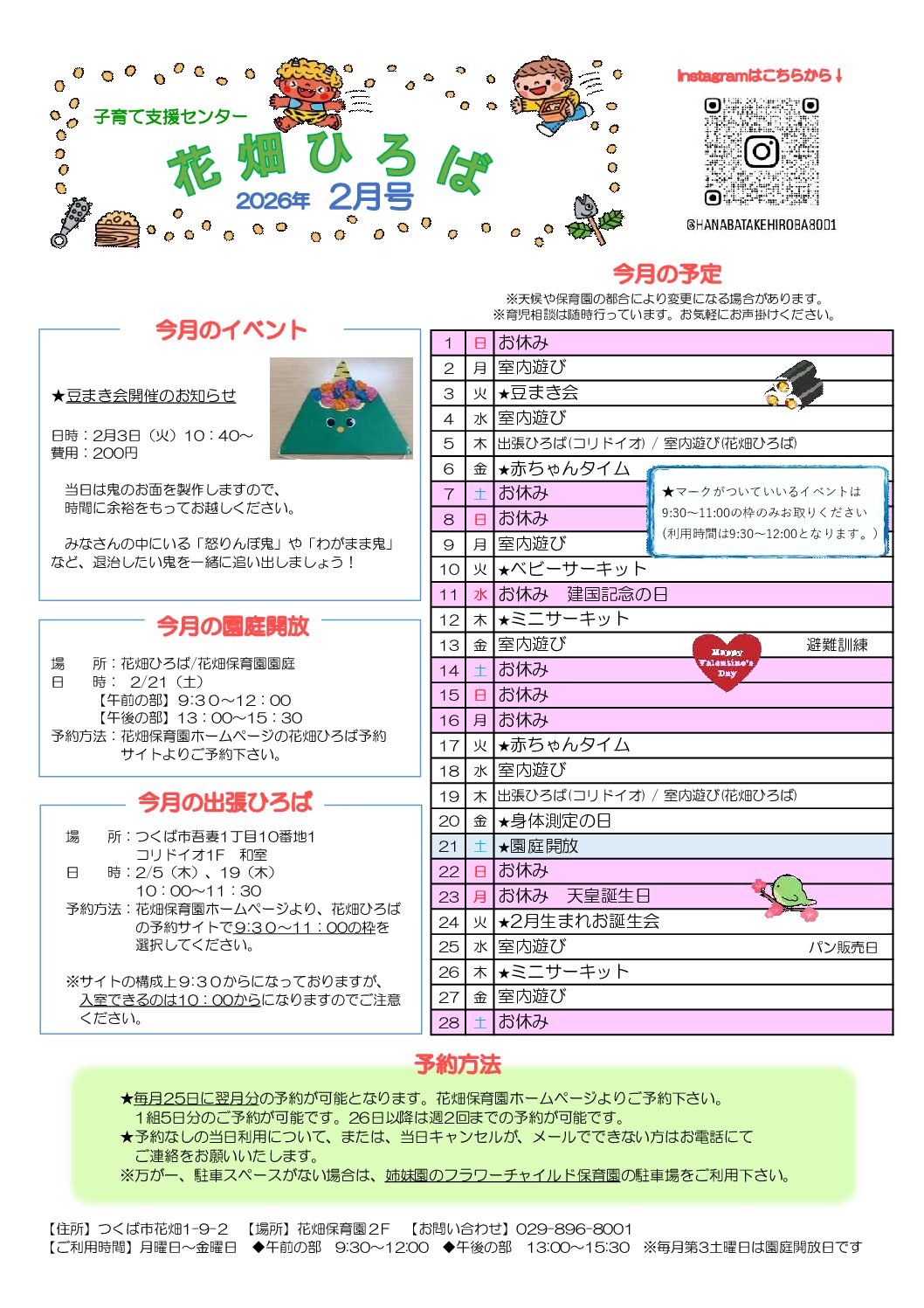 花畑ひろば 2月行事カレンダー